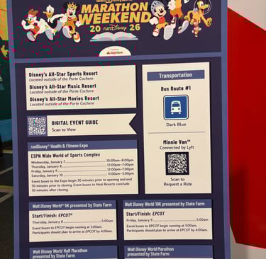 This was my 13th Marathon Weekend. I started going in 2011 with my first Disney marathon (second marathon ever), took a couple years' hiatus, and then started back in 2015 with my first Goofy Challenge, and have come back every year since (should I count the 2021 virtual year?...I think so!). Aside from 2025 and 2026, I have always done either the Goofy Challenge, the Dopey Challenge (once), or the full marathon. These last two weekends I have done the Half Marathon only -- did I have some FOMO? Yes indeed. Was it an amazing experience to be able to spectate and support my friends in their marathon journeys? Emphatically yes. I don't think people realize how important it is to runners to be able to have that support and love along the course, especially when things get difficult. And I certainly never appreciated the logistical challenges of being in at least three different spots along the course to make sure to meet our runners! Thank goodness for the Monorail.